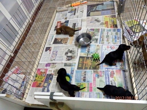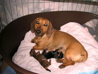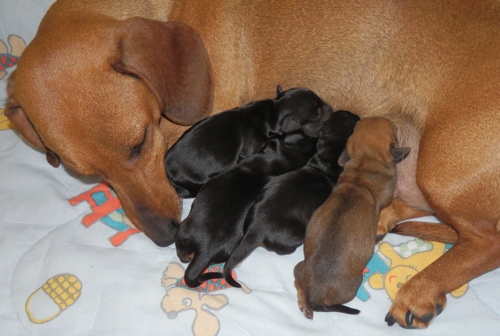 Saturannan Leidi ja 12.7.2012 syntyneet päivän vanhat pennut